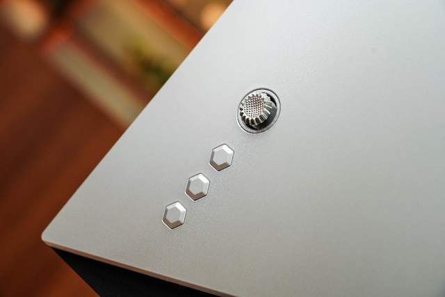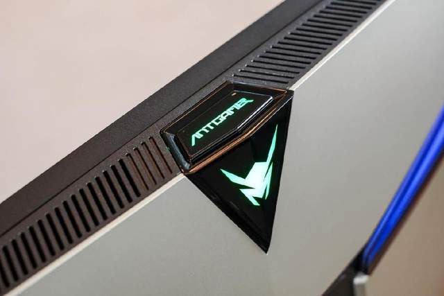 在顶部设置有蚂蚁logo灯以及散热隔栅的设计不仅提升了整体美感,也让显示器长时间高负载运行时有效排出热量,保证显示器稳定运行。