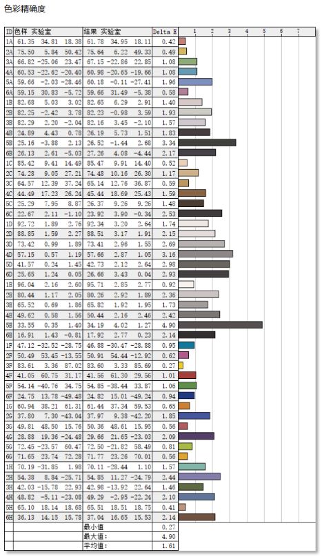 在色彩准确度的测试中,蚂蚁电竞ANT257PF显示器平均ΔE值为1.61,最大ΔE为4.9。一般来说平均ΔE<2,人眼就基本上分辨不出色彩的差异,在同档次的赛事级超高刷显示器中,它的色彩表现也处于较高水平,能够满足一些对色彩要求较高的应用场景,如图像处理或影音娱乐。