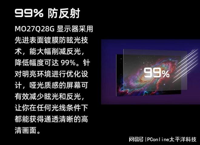 屏幕采用四边窄边框设计,上左右三边几乎无边,视觉沉浸感极强。底边框宽度适中,便于放置操作。表面覆盖高清晰度雾面屏,配备先进的表面镀膜防眩光技术,能减少高达99%的环境光反射。这在宿舍环境中特别实用——无论窗外阳光刺眼,还是室友的台灯干扰,都能保持画面清晰、色彩准确。