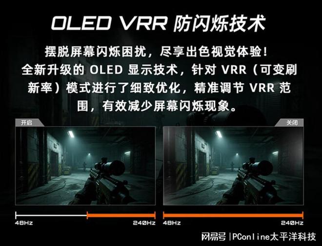 OLED VRR防闪烁技术的加持进一步提升游戏体验,它专门针对OLED显示技术下的VRR可变刷新率模式进行了深度优化,能够精准调节VRR范围,有效减少屏幕闪烁现象,确保画面稳定,尽享出色视觉体验。