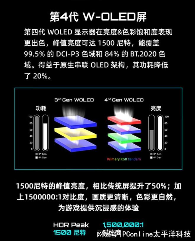 对比度更是高达1,500,000:1,同时由于OLED的自发光特性,最低亮度为0,实际对比度接近无限。这在暗部细节表现上尤为出色,比如夜间游戏场景或电影黑场,都能呈现纯黑而非灰蒙蒙。