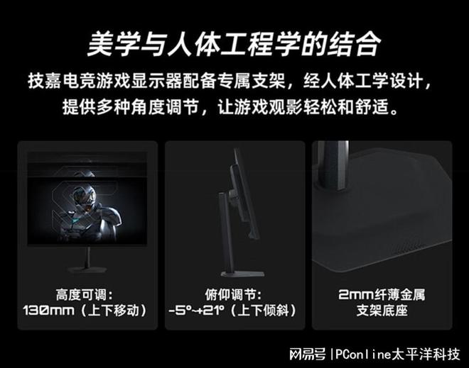 支架部分是这款显示器的亮点之一。采用2mm厚的金属底座,稳定性极高,却不占桌面空间。支架支持丰富的调节功能:高度可调0-130mm,左右旋转-15°至15°,前后倾斜-5°至21°,甚至支持90°垂直旋转(Pivot模式)。你可以根据坐姿和使用场景随意调整,比如横屏写代码,竖屏刷社交媒体。支架还兼容VESA 100x100mm壁挂标准,如果你宿舍空间有限,直接挂墙也能节省地方。